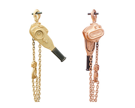 防爆手扳葫蘆材質(zhì)有鋁青銅材質(zhì)和鈹青銅材質(zhì)(釋:鋁青銅防爆手拉葫蘆在濃度7.8%的乙烯氣體下作業(yè)不會(huì)引起爆炸。鈹青銅防爆工具在濃度21%的氫氣中作業(yè)不會(huì)引起爆炸,因?yàn)殁斍嚆~材質(zhì)磁性為零,所以鈹青銅防爆工具又稱防磁工具。)被廣泛應(yīng)用于石油、石化、油站、油庫(kù)、采氣、化工、軍工、電力、礦山、電子、鐵路、等潛在火患和爆炸的危險(xiǎn)環(huán)境中,在作業(yè)中產(chǎn)品相互摩擦撞擊不會(huì)產(chǎn)生機(jī)械火花,有效防止火災(zāi)事故,確保國(guó)家財(cái)產(chǎn)和人身安全。也是機(jī)械制造和機(jī)械維修必不可少的專用工具。尤其是任意角度的牽引和在場(chǎng)地狹小,露天作業(yè)和無(wú)電源的情況下,更顯示其優(yōu)越性。